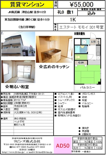 ⑤大家さんと隣接のお部屋だから女性1人でも安心な物件
